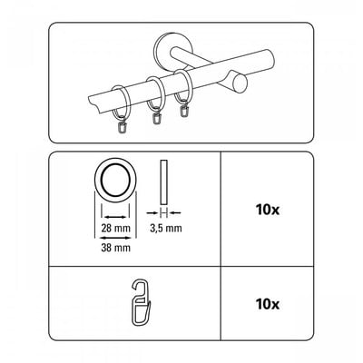 Ta 10-delni komplet obročkov in kavljev iz Gardinije je idealna dodatna oprema, še posebej za raztegljive karnise iz kolekcije Elba - na primer v dolžinah 120 - 210 cm ali 190 - 340 cm. Zaradi svoje visoke kakovosti bo zanesljivo poskrbel, da bodo zavese visele, zato boste lahko uživali v dodatni zasebnosti v svojem domu, hkrati pa se boste počutili udobno.