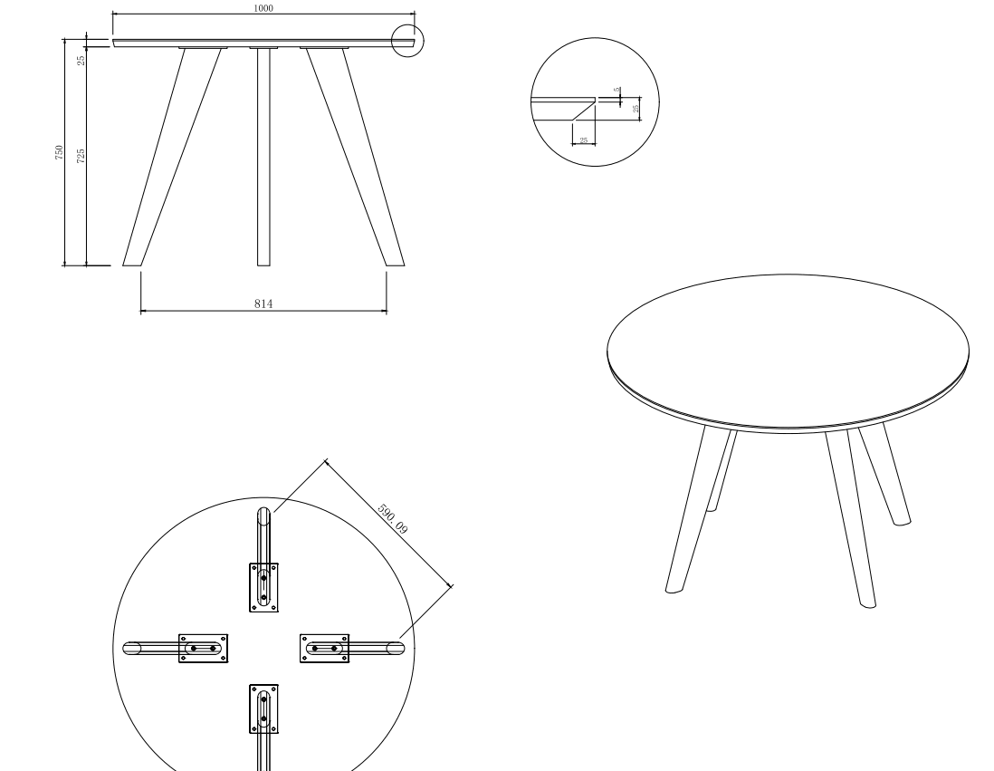 Z mizno ploščo v hrastovem dekorju, ø 100 cm