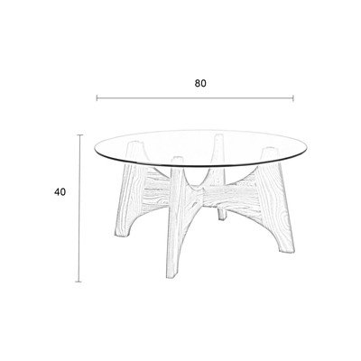 S stekleno mizno ploščo, v naravni barvi, ø 80 cm, višina 40 cm
