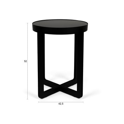 Miza se ponaša s kovinsko konstrukcijo, prevlečeno s prašnim premazom, in lakiranim vrhom iz MDF. Zaradi minimalističnega dizajna in okrogle oblike je primerna tako za moderne kot klasične prostore.