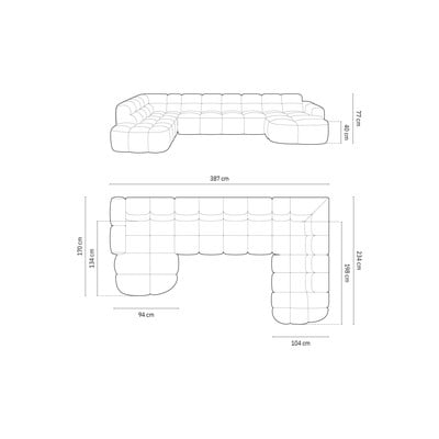 Desni kot/v obliki črke "U", opečnato oranžna, večsedežna, širina 387 cm