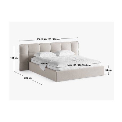 Slonokoščena oblazinjena zakonska postelja s prostorom za shranjevanje in z letvenim dnom 140x200 cm Eric – Micadoni