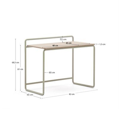 Otroška pisalna miza Tinn znamke Kave Home je preproste in igrive oblike. Njen vrh je izdelan iz jesenovega furnirja, ki daje pisalni mizi prijeten videz.