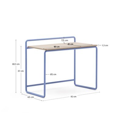 Otroška pisalna miza Tinn znamke Kave Home je preproste in igrive oblike. Njen vrh je izdelan iz jesenovega furnirja, ki daje pisalni mizi prijeten videz.
