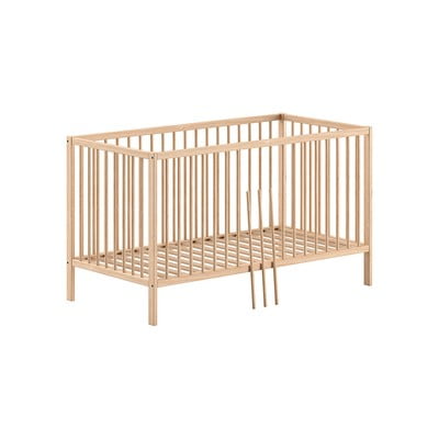 Otroška posteljica DINO70x140 cm, z odstranljivo stranico/z nastavljivo višino, z letvenim dnom, iz masivne bukve, površinska obdelava: lak, v naravni barvi