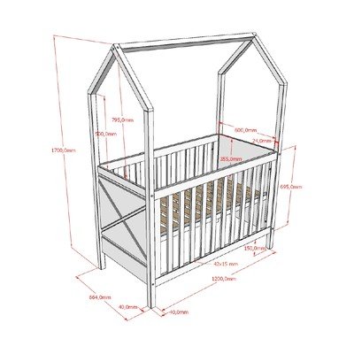 60x120 cm, z nastavljivo višino, z letvenim dnom, iz masivnega bora, površinska obdelava: lak, v naravni barvi