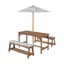 Vrtni set Outdoor+ znamke Roba vključuje dve prostostoječi klopi, mizo in senčnik. Otrokom omogoča uživanje na prostem in igro na svežem zraku.