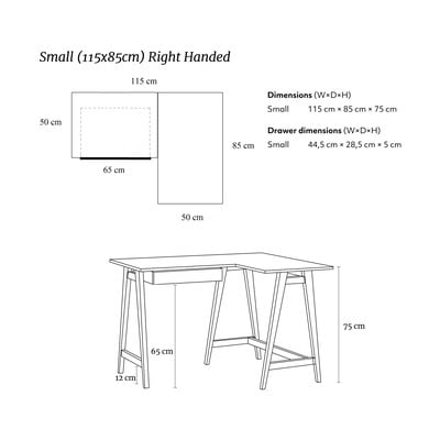Pisalna miza Luka je opremljena s predalom velikosti 44,5 x 28,5 x 5 cm. Ta omogoča, da imate pri roki vse potrebno, hkrati pa uživate v prostornem delovnem okolju.