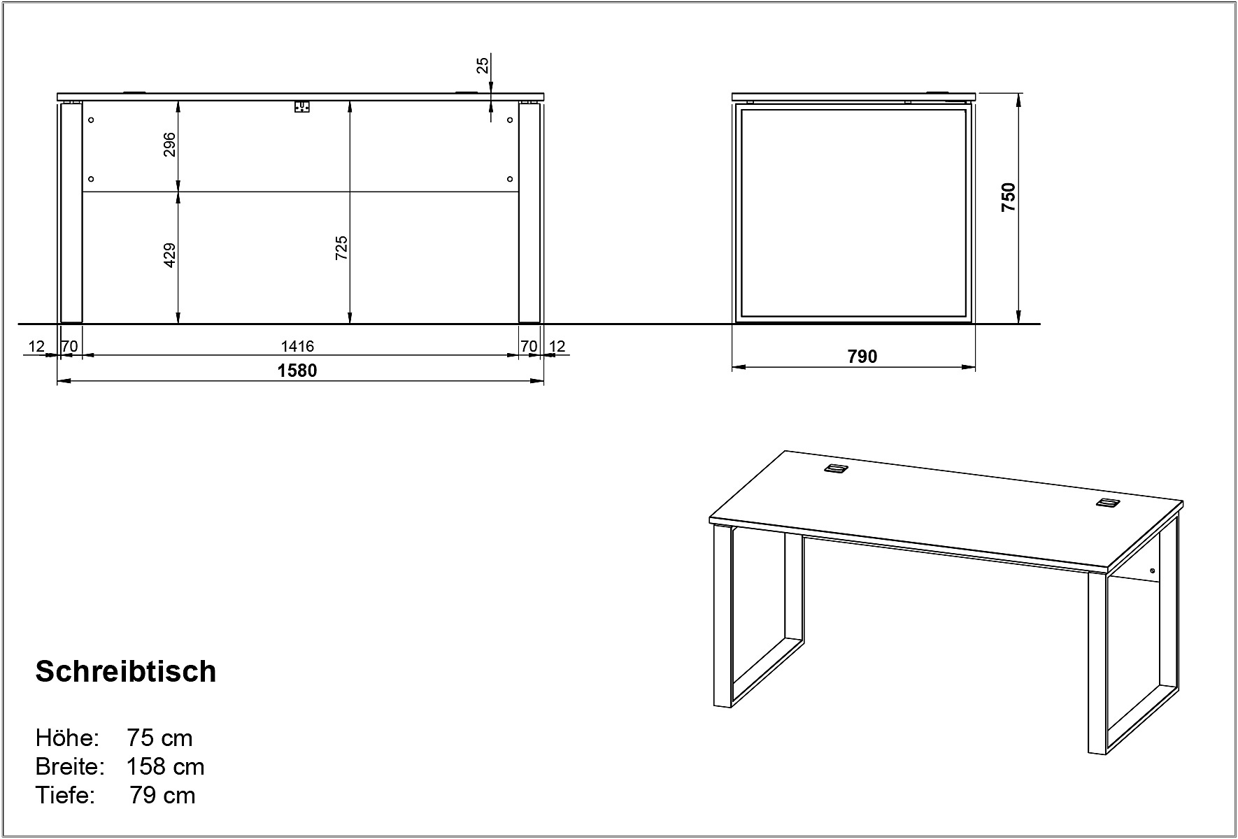 Z luknjo za kable, v hrastovem dekorju, 79x158 cm