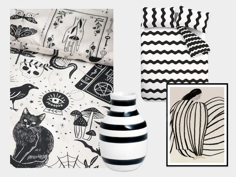 Enojna, na gumbe, obojestranska, črtasta, črno-bela, 135x200 cm