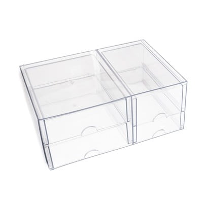 Organizator je razdeljen na dva dela, ki sta drug ob drugem. V vsakem delu sta dva izvlečna predala s priročnim polkrožnim izrezom za lažje odpiranje.