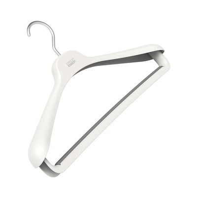 Komplet obešalnikov Orderly znamke Joseph Joseph je odličen pripomoček za urejanje garderobe. Obešalniki so zasnovani s širokimi ramenskimi oporami, ki so idealne za obleke, suknjiče in plašče. Elastični ročaji preprečujejo, da bi hlače zdrsnile navzdol. Vrtljivi aluminijasti kavlji omogočajo enostavno obešanje na palico v omari.