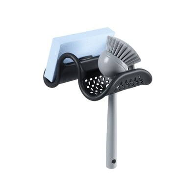 Sling je vsestranski organizator za pomivalno korito, ki ga lahko namestite na rob ali steno pomivalnega korita, da pripomočke za pomivanje posode spravite stran od delovne površine. Veliki izrezi in perforirano dno omogočajo odtekanje vode in preprečujejo nabiranje vlage.