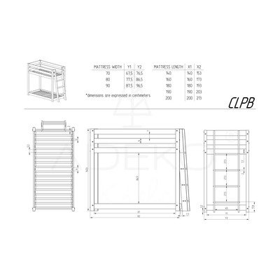 Otroška postelja CLPB90x190 cm, pograd, z letvenim dnom, iz masivnega bora, površinska obdelava: brez obdelave/površinska obdelava: krtačenje, v naravni barvi
