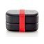 Posoda za malico To Go znamke Lékué je sestavljena iz dveh 500-mililitrskih posodic, ki sta povezani s silikonskim trakom za lažje prenašanje.