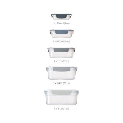 Posode za hrano Nest znamke Joseph Joseph predstavljajo elegantno rešitev za shranjevanje živil. Ta komplet 5 kosov je zasnovan tako, da učinkovito prihrani prostor v vaši kuhinji.