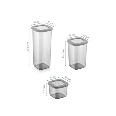 Posode so kakovostno izdelane, pokrovi tesno zapirajo posodo. Cena za takšno količino je nizka. Toplo priporočam za ohranjanje estetike v kuhinji. Pos...