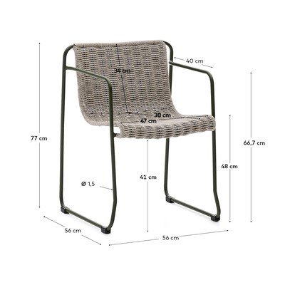 Stol Maurina znamke Kave Home se ponaša z dizajnom, ki ga je studio Yonoh ustvaril ekskluzivno za Kave Home. Sedež in naslonjalo sta izdelana iz ročno tkane vrvi, ki je odporna na UV-žarke, kar zagotavlja dolgo življenjsko dobo tudi pri pogosti uporabi na prostem.
