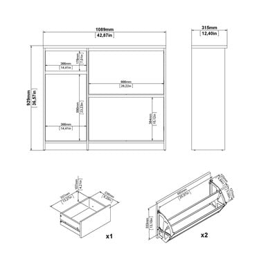 Vključuje dvoje vrat na tečajih, zaprto omarico s polico in predal, ki skupaj zagotavljajo prostor za do 12 parov čevljev. Minimalističen videz s prefinjeno teksturo lesa daje stojalu za čevlje sodoben in prefinjen pridih.