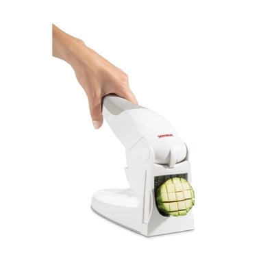 Rezalnik zelenjave in krompirja znamke Leifheit je idealen kuhinjski pomočnik. Zaradi nedrsečega ročaja in spodnje plasti zagotavlja varno in enostavno rezanje. Vključuje dva ostra vložka za rezanje palčk velikosti 10 mm in 12 mm. Primeren je za krompir, bučke, kumare ali korenje. Nože je treba umivati ročno, druge dele lahko pomivate v pomivalnem stroju.