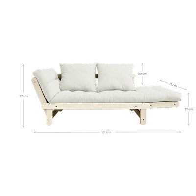 Zaradi sestavljenega borovega okvirja in mehkega futona (ki je ležišče, katerega obliko in funkcijo je navdihnila Japonska) je mogoče kavč postaviti v več različnih položajev: