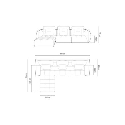 Desni kot/levi kot/s kotom po izbiri/z ležalnikom, rdeča, večsedežna, širina 332 cm