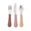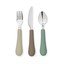 Otroški jedilni pribor Rose Mix proizvajalca Cam Cam Copenhagen v kompletu treh kosov. Njegovi mehki silikonski ročaji so enostavni za držanje in na koncu okrašeni s cvetličnim motivom.