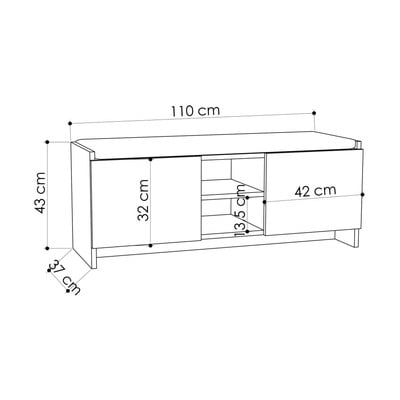 Omarica za čevljeS klopjo, iz MDF plošč, površinska obdelava: Melamin, črna/rjava, število parov čevljev 10 , širina 110 cm, višina 43 cm, globina 37 cm