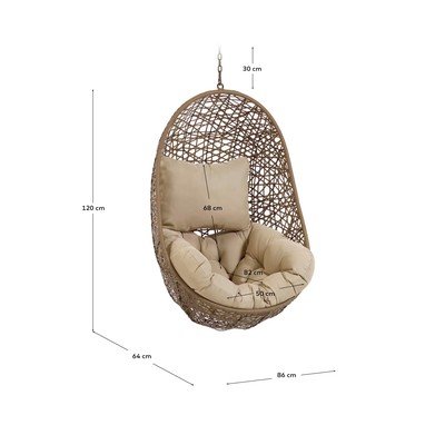 Prepustite se sproščenemu razpoloženju! Viseči fotelj bo takoj postal vaše najljubše zatočišče in glavni adut vašega vrta ali terase. Lahko pa ga postavite tudi v notranjost. Navsezadnje bodo trpežen material in udobne blazine dobrodošle tudi v dnevni sobi.