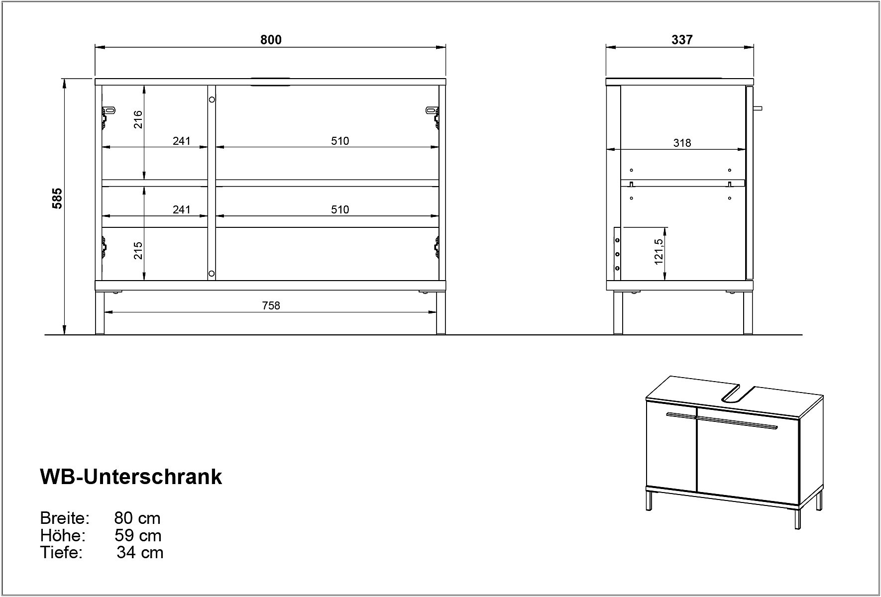 V mat dekorjuIz iverne ploščePovršinska obdelava: MelaminV mat dekorjuRjavaŠirina 80 cmVišina 59 cmGlobina 34 cm