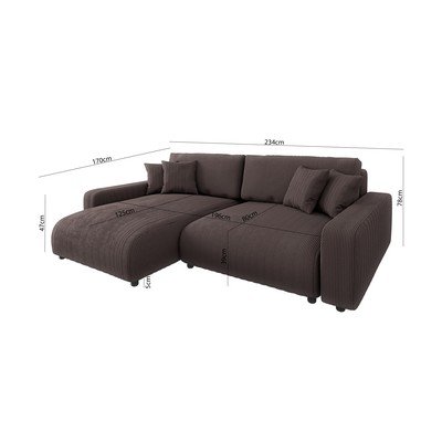 Iz rebrastega žametaRaztegljiva/s prostorom za shranjevanjeDesni kot/levi kot/s kotom po izbiri/z ležalnikomRjavaTrisedežnaŠirina 234 cm