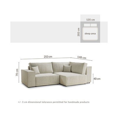 Iz šeniljeRaztegljiva/s prostorom za shranjevanjeDesni kot/v obliki črke LRjavaTrisedežnaŠirina 253 cmGlobina 148 cmGlobina sedeža 65 cm