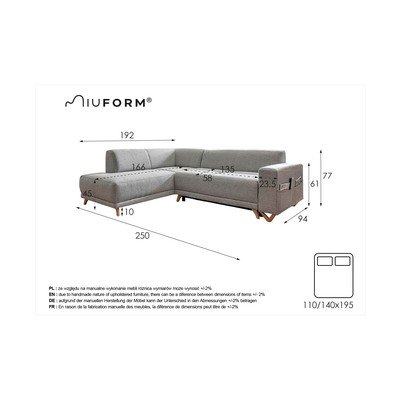 Raztegljiva/s prostorom za shranjevanjeLevi kot/v obliki črke LRjavaŠtirisedežnaŠirina 250 cmGlobina 192 cmGlobina sedeža 58 cm