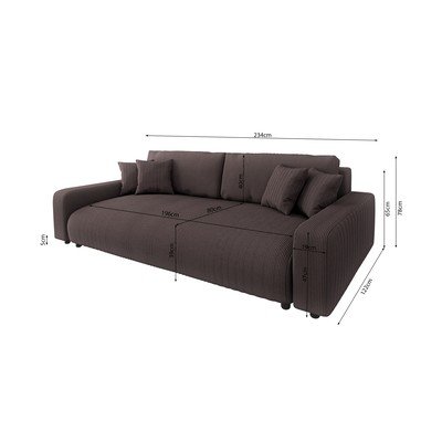 Iz rebrastega žameta, raztegljiva/s prostorom za shranjevanje, rjava, trisedežna, širina 234 cm