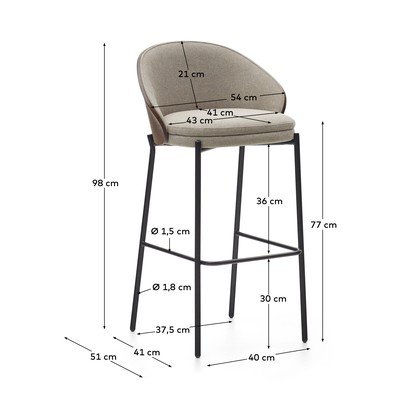 Eleganten barski stol Eamy iz Kave Home vnese slog in udobje v vsako notranjost. Stol z višino sedeža 77 cm je idealen za sodobne kuhinje ali bare. Opremljen je s plastičnimi blazinicami, ki ščitijo tla pred praskami. Ergonomska zasnova in kakovostni materiali zagotavljajo udobno sedenje in dolgo življenjsko dobo. Odlična izbira za tiste, ki iščejo kombinacijo funkcionalnosti in estetike.
