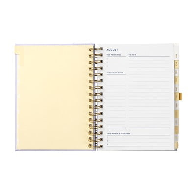 Dnevnik zajema 13 mesecev od avgusta do avgusta naslednjega leta. Omogoča tedensko in mesečno načrtovanje. Praktični razdelilniki olajšajo navigacijo znotraj leta. V žepu na zadnji strani so pomembne beležke ali vizitke, tako da jih ne boste več izgubili.