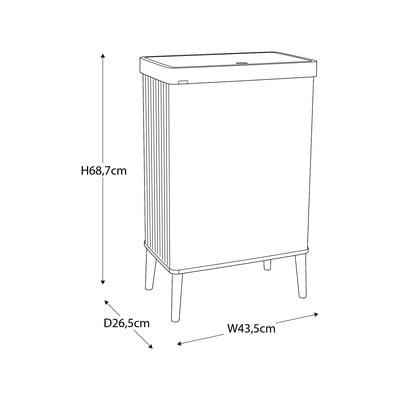 Pravokotni koš ima prostornino 54 litrov, izdelan je iz recikliranega materiala in je zaradi odpiranja na gumb idealen za kuhinjo. Robustna nedrseča zasnova ščiti tla pred praskami.