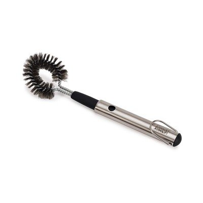 Ščetka za čiščenje GrillOut znamke Joseph Joseph je priročen pomočnik za vzdrževanje žara. Zahvaljujoč robustnim ščetinam in okrogli obliki enostavno odstrani zažgane ostanke hrane tudi s težko dostopnih mest.