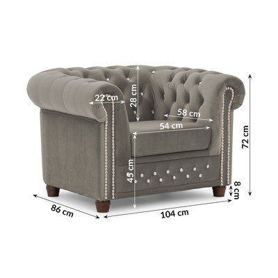 Siv žameten Chesterfield fotelj York Blik – Ropez