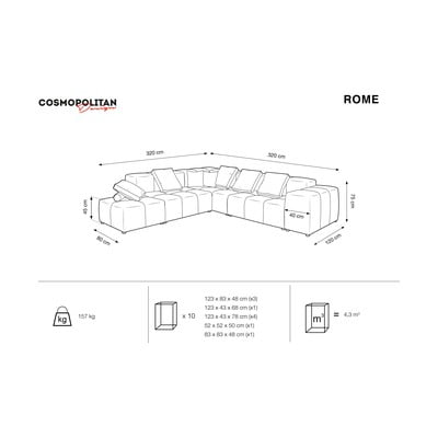 Velika notranjost si zasluži prostorne sedežne prostore. Kavč Rome Velvet je sestavljen iz več modulov, naslonjal in širokih naslonjal za roke. Te module lahko kupite tudi ločeno in si tako zagotovite konfiguracijo po meri, ki bo ustrezala vam in vaši notranjosti. Iz modulov lahko sestavite manjši ali večji kavč, kotni kavč ali celo kavč v obliki črke U. Serija Rome Velvet ponuja tudi veliko različic v vrsti blazin v številnih velikostih in barvah, ki vašemu kavču dodajo prijetnejši pridih, pa tudi udobje v obliki žametne površine, ki krasi tako blazine kot kavč. Preizkusite lahko tudi tkaninsko različico zofe Rome.