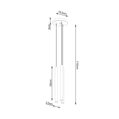 Viseča svetilka Fideus znamke Sollux. Tri betonske cevi v prostor vnašajo edinstveno kombinacijo materiala in oblike.