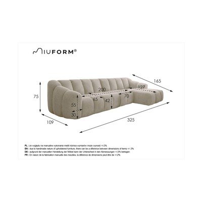 Bež kotna sedežna garnitura (desni kot/z ležalnikom) Shell – Miuform