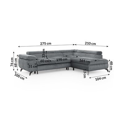 Iz rebrastega žametaNastavljiva/raztegljiva/s prostorom za shranjevanjeDesni kot/v obliki črke LSivaPrimerna za hišne ljubljenčke/odporna na madežeŠtirisedežnaŠirina 275 cm