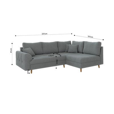 Iz tkanine bouclé, desni kot/v obliki črke L, siva, trisedežna, širina 231 cm