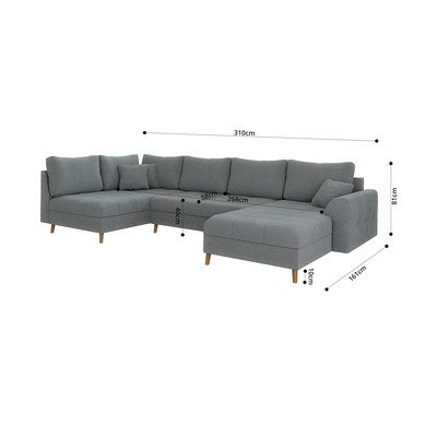 Iz tkanine bouclé, desni kot/v obliki črke "U", siva, večsedežna, širina 310 cm