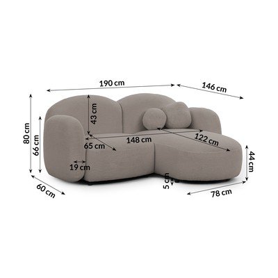 Svetlo rjava kotna sedežna garnitura iz tkanine bouclé (desni kot/z ležalnikom) Orbit – Ropez