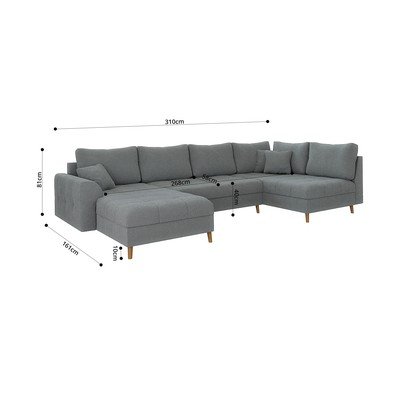 Iz tkanine bouclé, levi kot/v obliki črke "U", siva, večsedežna, širina 310 cm