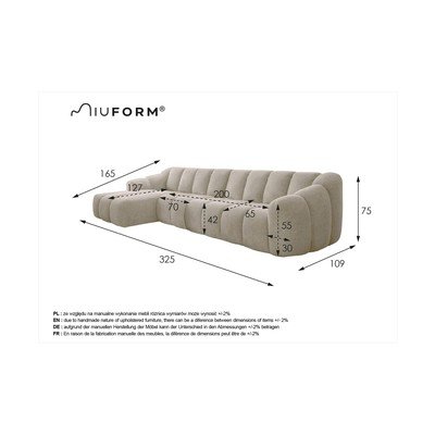 Bež kotna sedežna garnitura (levi kot/z ležalnikom) Shell – Miuform