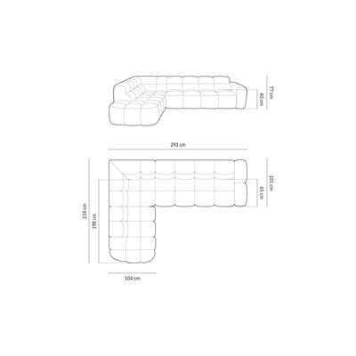 Levi kot/v obliki črke L, siva, večsedežna, širina 293 cm
