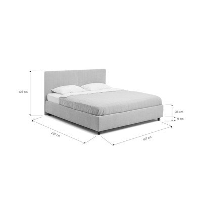 Oblikovalska oblazinjena postelja z letvenim dnom, možnostjo dviga letvenega dna in nastavljivo višino vzglavja. Zaradi izjemno enostavne montaže, kakovostnih in trpežnih materialov ter visoke nosilnosti je idealna izbira za vsakodnevno udobje in elegantno notranjost.